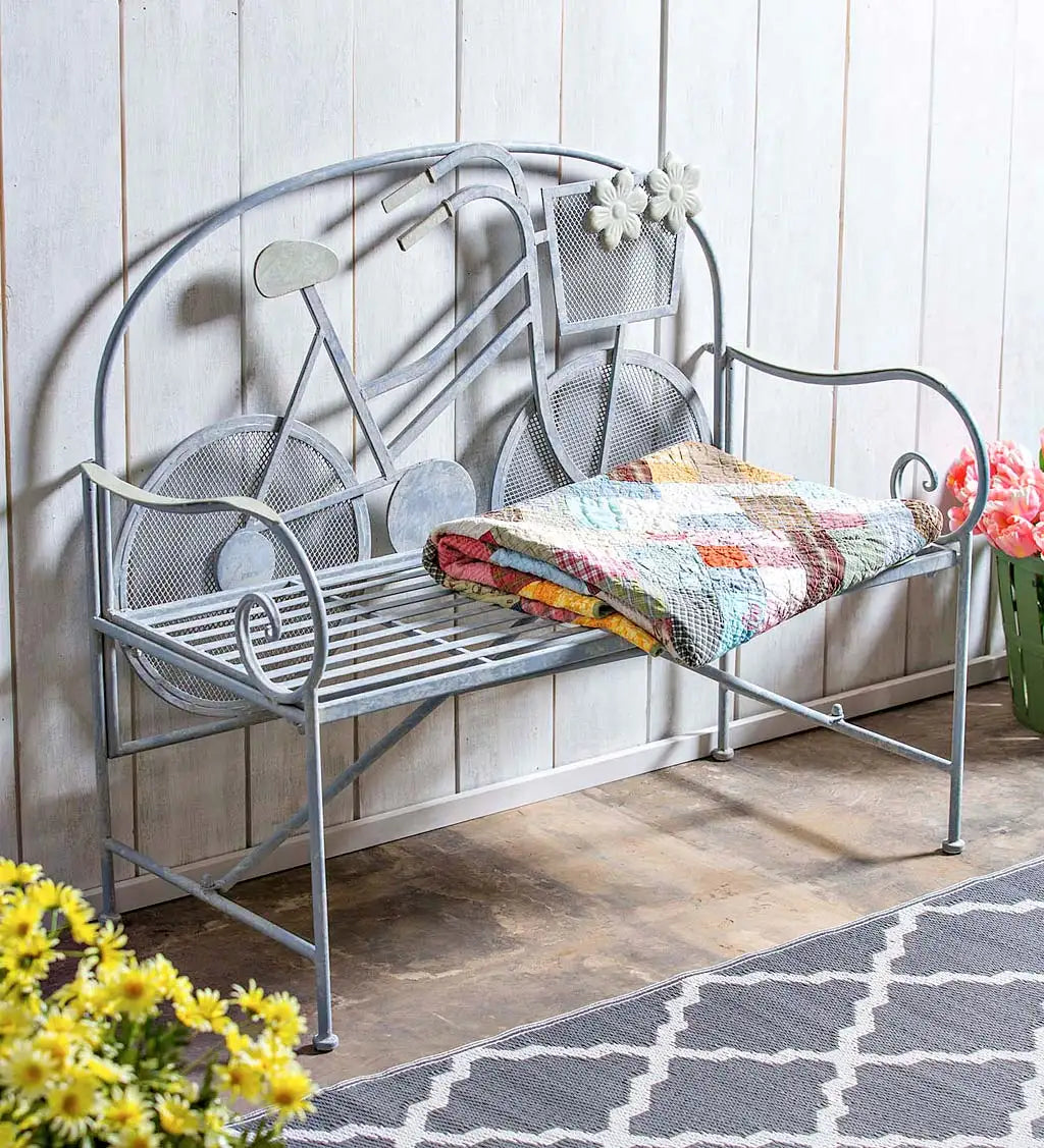 Bicycle Off-White Metal Outdoor Garden Bench