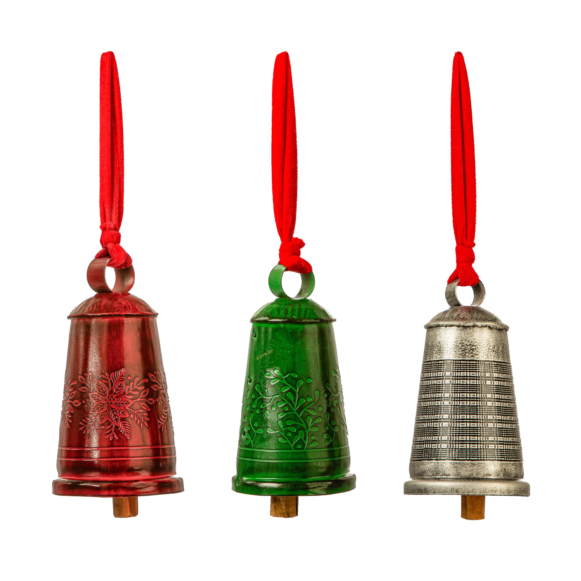 Delight friends and family with this charming bell assortment. Create a serene atmosphere where every time the wind blows, this assortment makes delicate sounds. This bell assortment features a debossed design and a Christmas color palette of red and green. Made from durable, weather-resistant material, this bell is perfect to hang from the porch, a tree, or a stand.