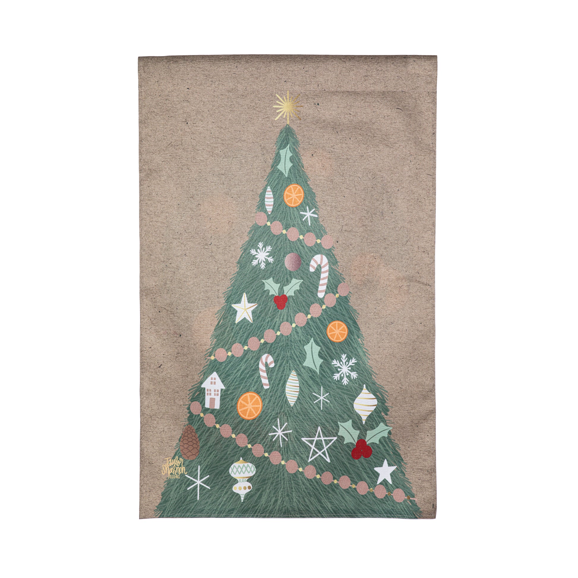 Decorate for the season and welcome friends and family to the home with this burlap flag. This rustic flag features a Christmas tree and wreath in muted colors. It has a sweet message that reads, “Happy Holidays.” Crafted of medium-weight, soft polyester burlap fabric, this flag has the look and feel of real burlap. Artwork is heat transferred onto both sides of the textured fabric to create a natural, crafted look. The poly-burlap is a durable and weatherproof material that will not fade or fray after continued use. All flags also feature a sleeve for use with any standard flagpole or stand, sold separately.
