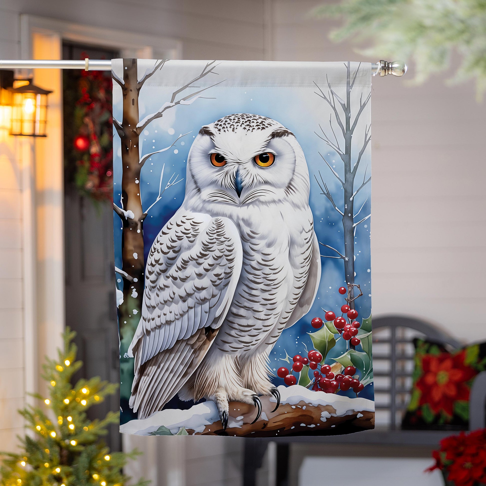 Snow Owl Burlap House Flag