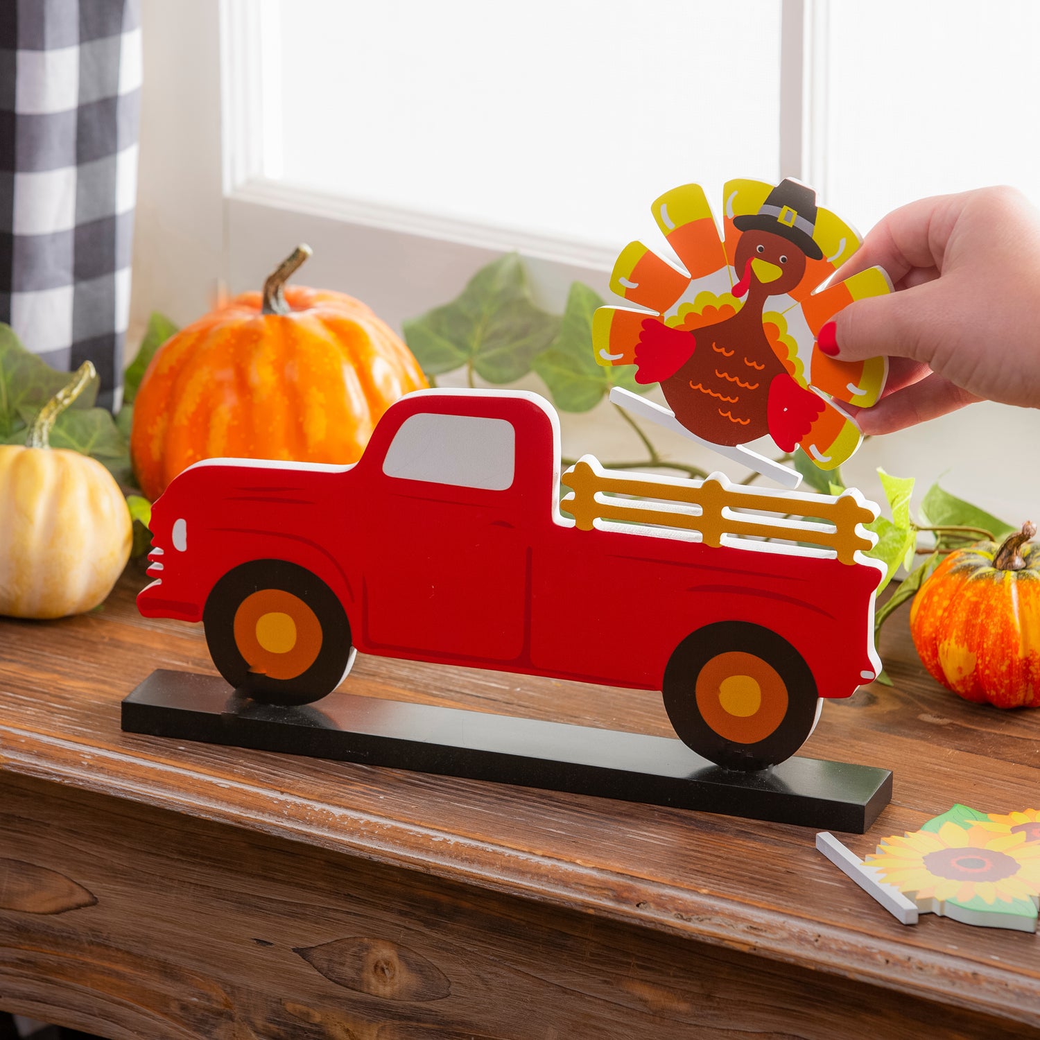 Wood Truck Table Decor with 8 Seasonal Interchangeable Icons