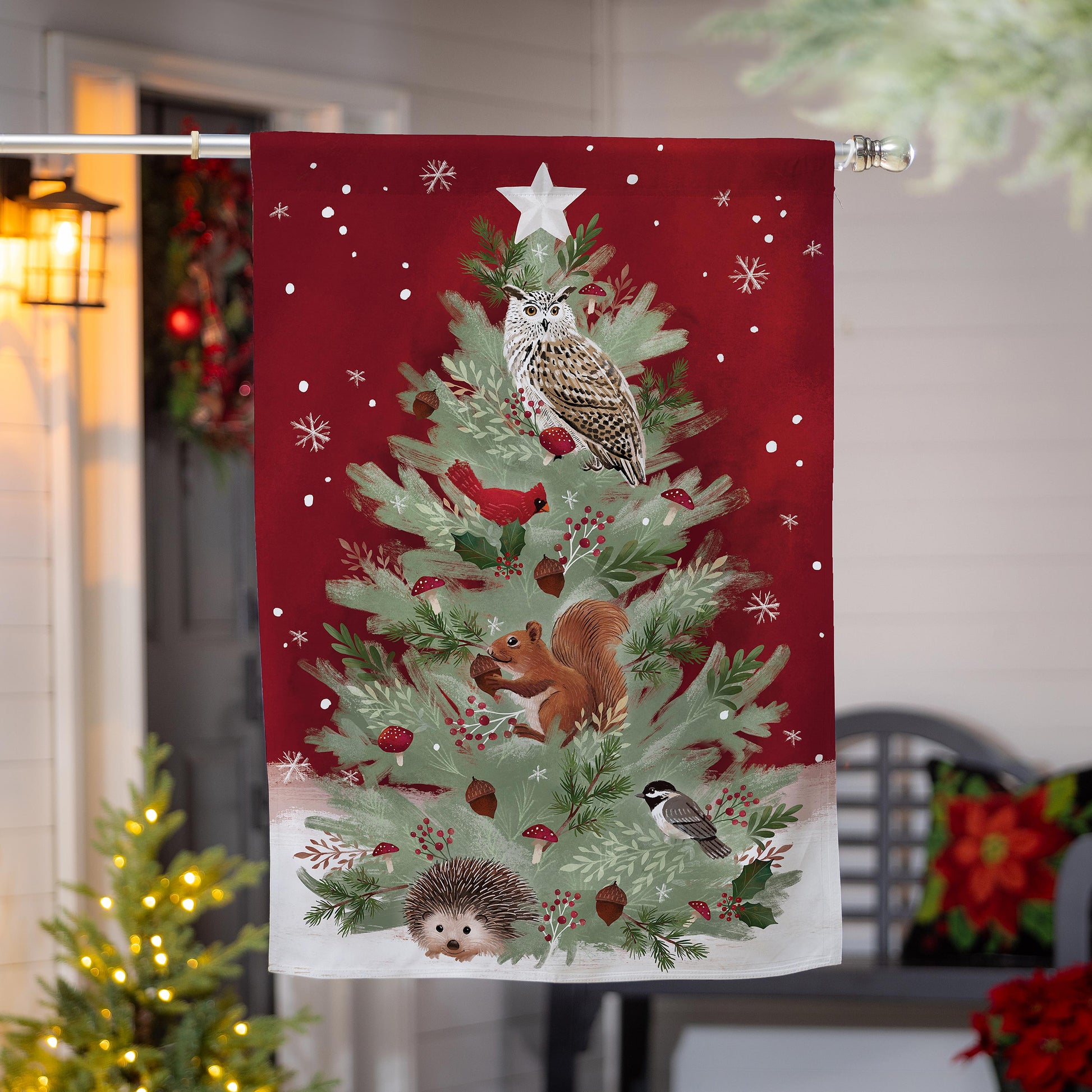 Woodland Animal Christmas Tree Lustre House Flag